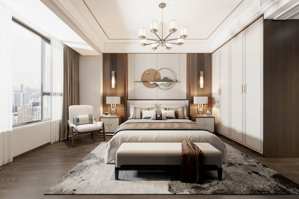 新中式風格是富含千年底蘊的東方中式風格與摩登時尚的現代風格彼此相遇結合,其精華之處在于以“一器一物皆是景,細微之處有乾坤”的古意為出發點,追隨時代的潮流,功能空間相互滲透,色彩空間相互碰撞,消除了傳統中式風格的沉悶和厚重,力圖在惹人癡迷的現代輕奢簡約中彰顯出傳統中式意蘊的雅致逸趣。